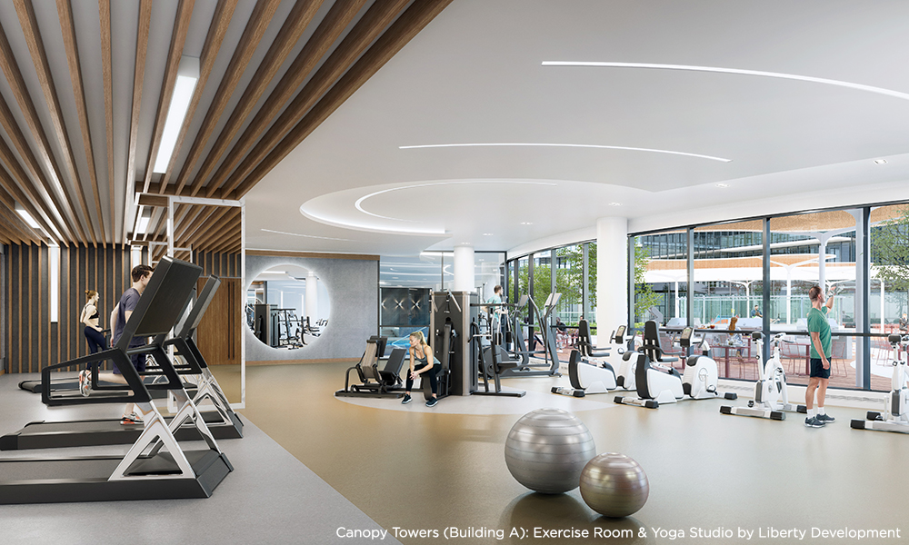 Set a goal and achieve it. Living at Canopy Towers invites this level of success in an ultra-modern Exercise Room. Amp up the adrenaline with the latest in state-of-the-art equipment in an inspiring space that will balance elegance and function. Then find your Zen and practice your breath in a beautifully peaceful Yoga Studio.