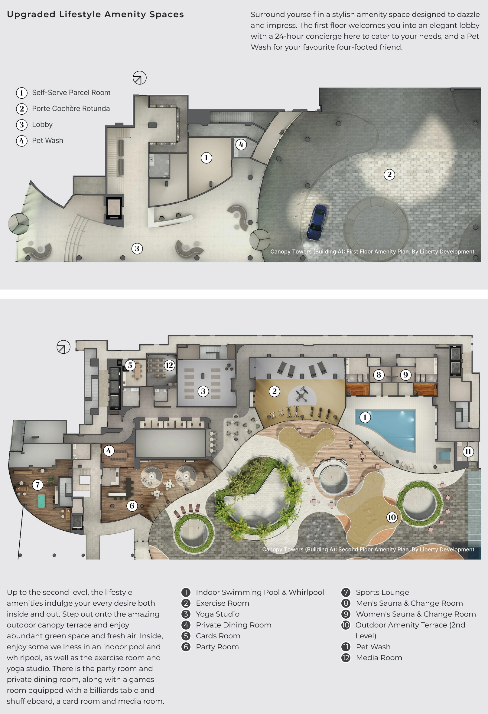 Tucked in behind the podium is a curved “lifestyle canopy” on the second floor. Below, it acts as a shielded central porte cochère for residents entering the building. Above it, a lushly landscaped canopy serves as a sanctuary with over 10,000 sq. ft. of amazing outdoor amenity space connected to incredible indoor amenities. Add to this an ideal location adjacent to the Mississauga Transit and Hurontario LRT, life at Canopy Towers is above all.